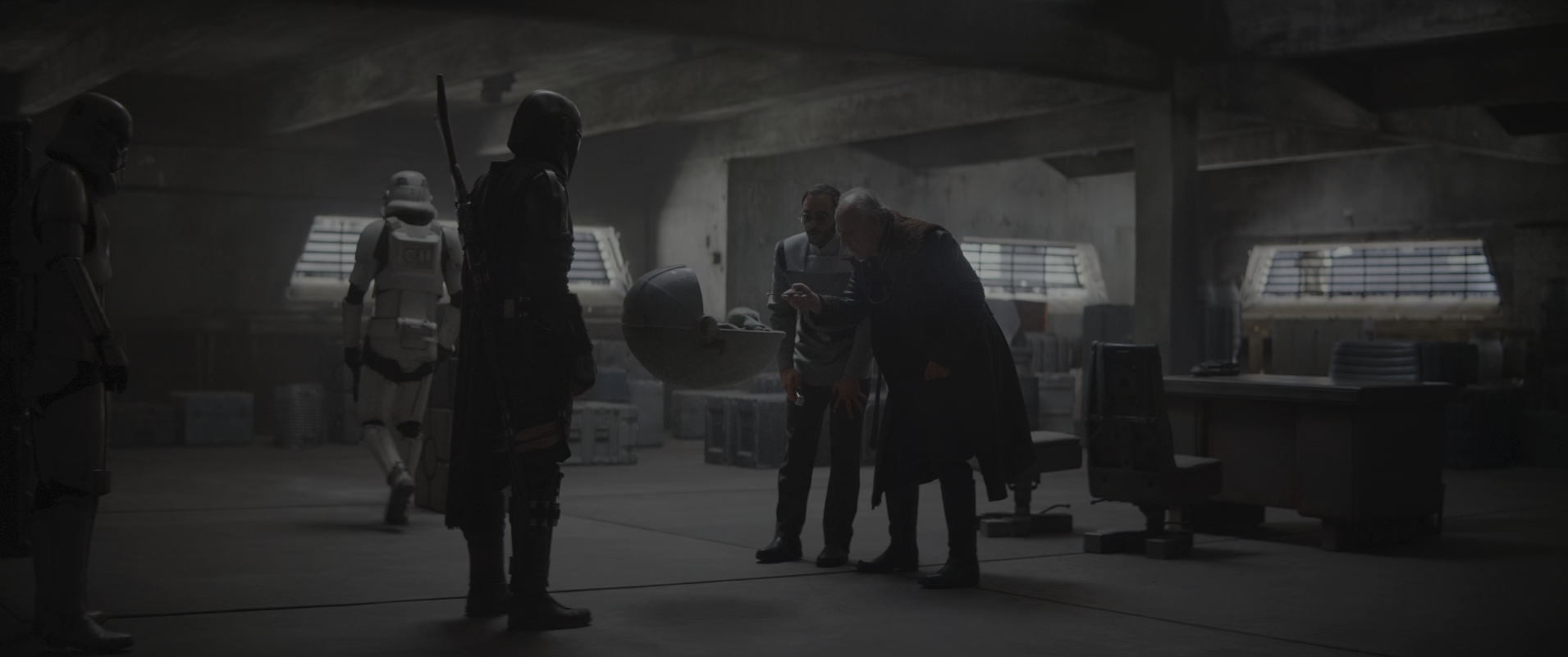 제국 의뢰인과 퍼싱 박사는 아기의 상태에 매우 만족하고, 의뢰에 대한 보상으로 많은 양의 베스카 주괴를 내어놓는다. 만달로리안은 아기를 어떻게 할 건지 묻지만 의뢰인에게 대답을 들을 수 없고, 아기의 마지막 모습이 눈에 밟힌다.