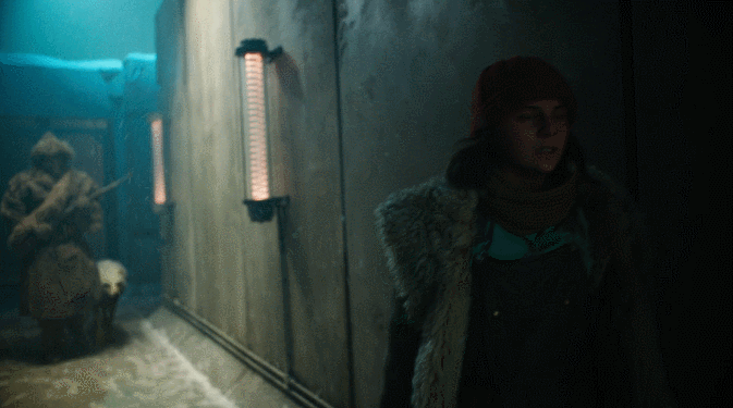 쿠퍼 박사와 아이가 기계실로 들어가고, 아이와 데몬을 갈라 놓는 기계가 작동하자, 밖에서 대기하고 있던 클라라는 표정이 변하며 넋을 잃는다.