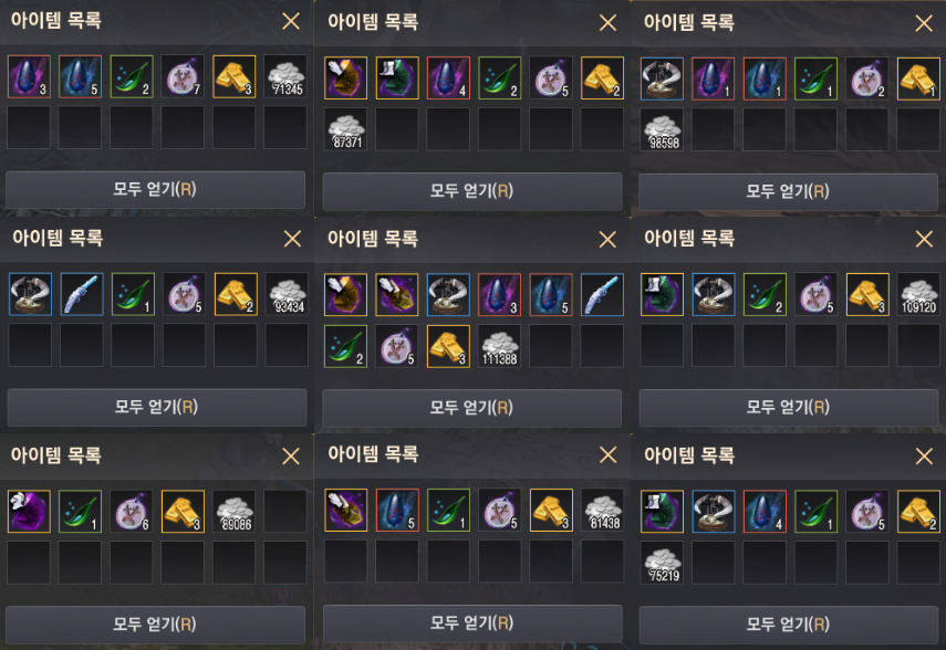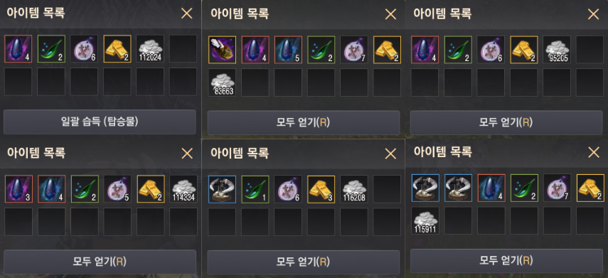 15회 정도 참여해 봤는데, 얻은 아이템은 다음과 같아요.
