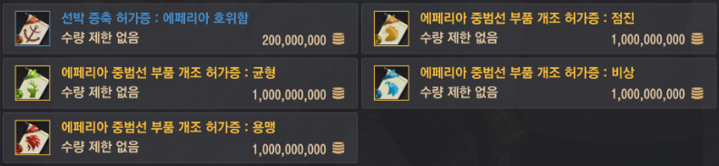| 타입별 에페리아 중범선 부품 개조 허가증 1개 |