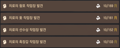| 치로의 흑장갑 | 방어력 | 55 | 55 | 55 | 55 |