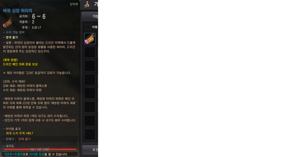 확정 보상 - 공헌도 경험치150, 드리간 특식1, 두르게프 친밀도30, 바위 심장 허리띠