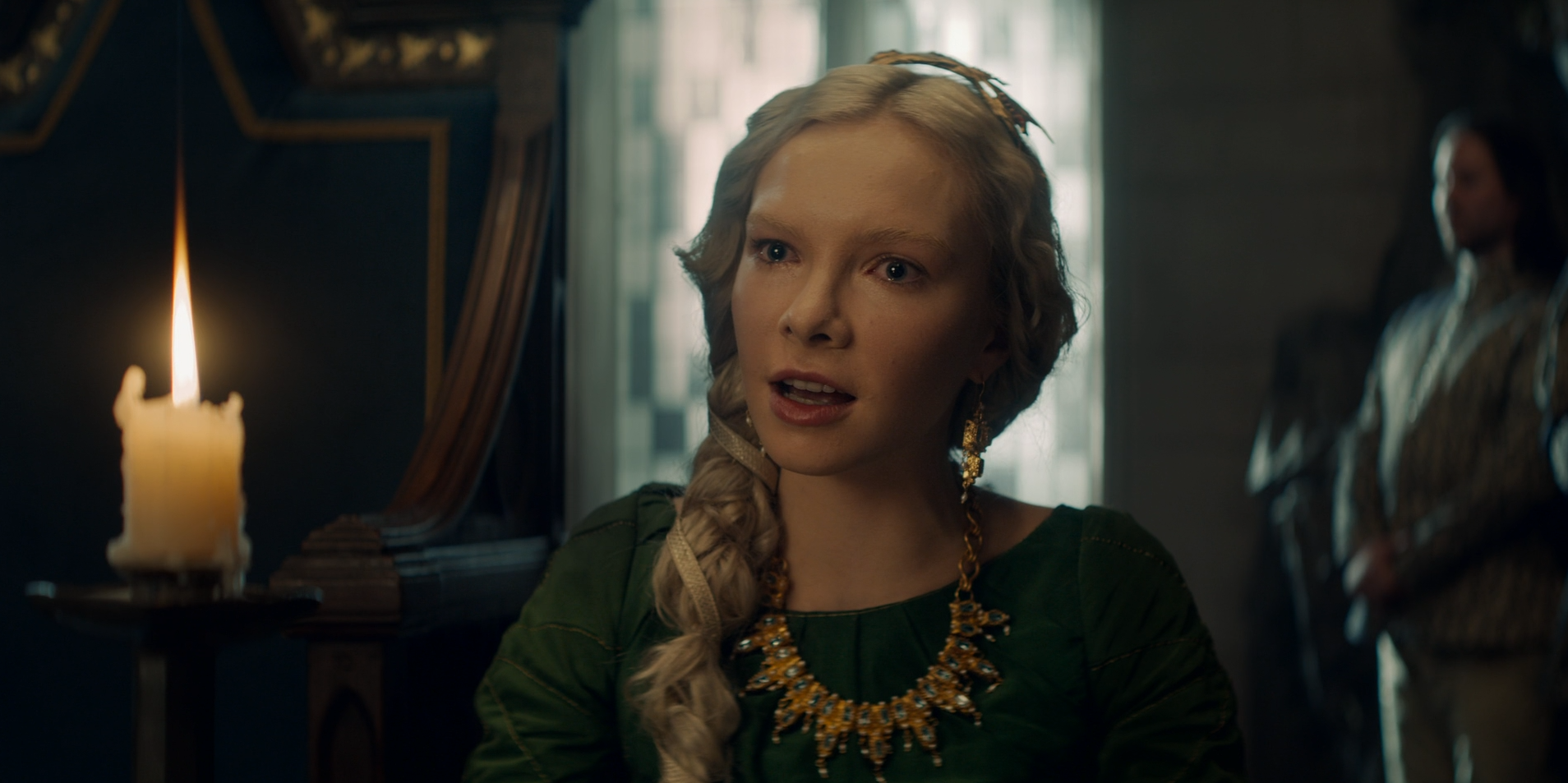 에이던을 방문하고 돌아가던 리리아 왕국의 칼리스 왕비(Queen Kalis, Isobel Laidler)를 호위하던 예니퍼는 암살자의 습격을 받고, 겨우 포탈을 열어 칼리스 왕비와 갓난 공주를 데리고 달아난다.