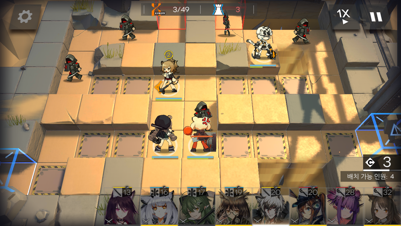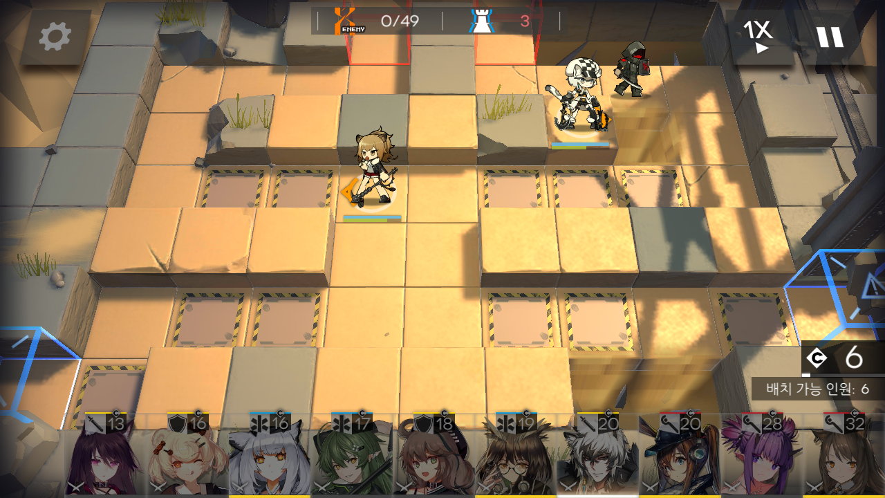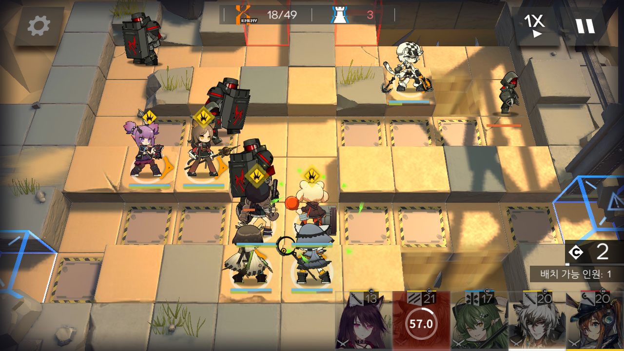 최대 8명 배치 가능한 2곳의 진행로가 있는 맵이에요. 오퍼레이터 종류와 배치 위치는 대부분의 공략들이 비슷하더라고요.