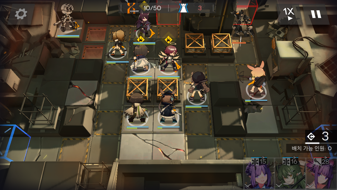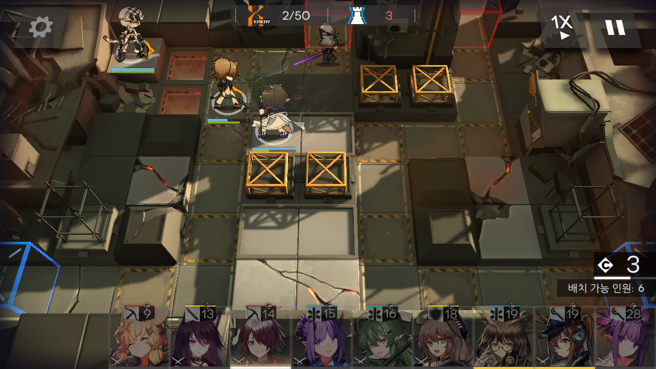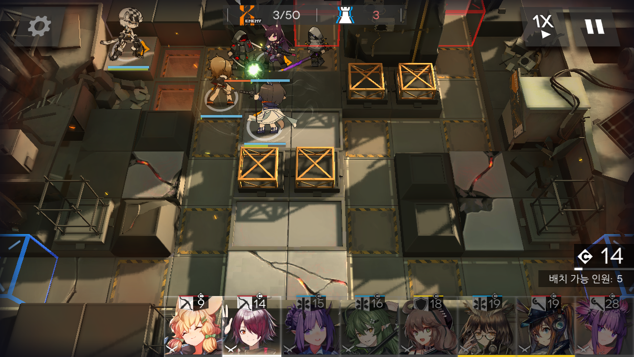 e. 2차 웨이브 까지는 문제가 없는데, 처치수 40 중반에 살카즈 캐스터가 양쪽에서 나오면서 속박을 거는데, 메딕이 없는 오른쪽 6번 스나이퍼는 소환 해제하거나 당할 테고요.