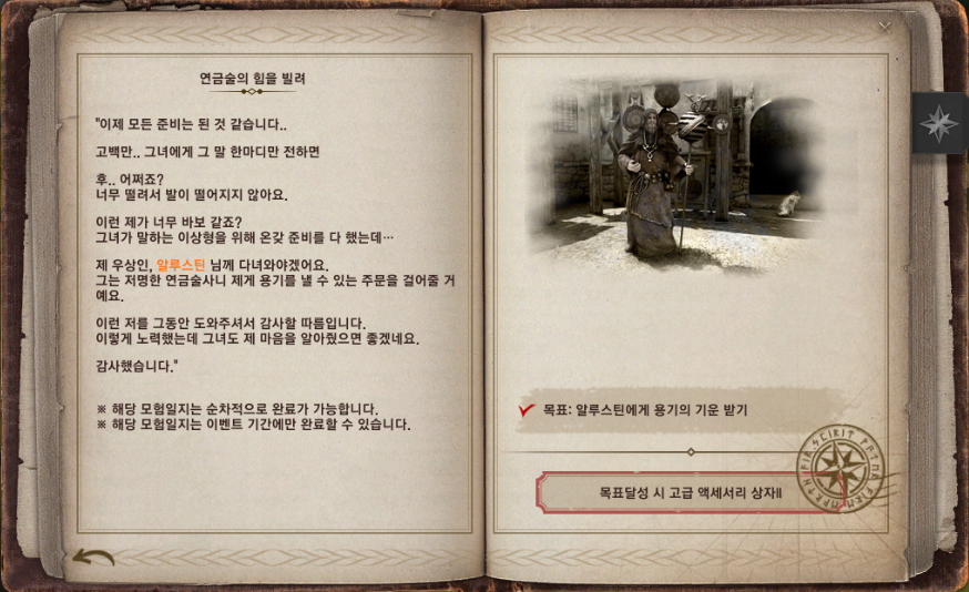 - 의뢰인은 <연금술사> 알루스틴 앞에 있는 NPC 중에서 가운데 있는 남자 NPC예요.
