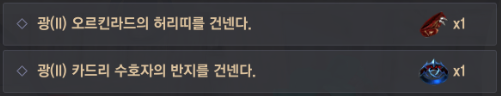 5. 도라 폰티에게 광(II) 카드리 수호자의 반지 건네주기, 도라 폰티에게 광(II) 오르킨라드의 허리띠 건네주기