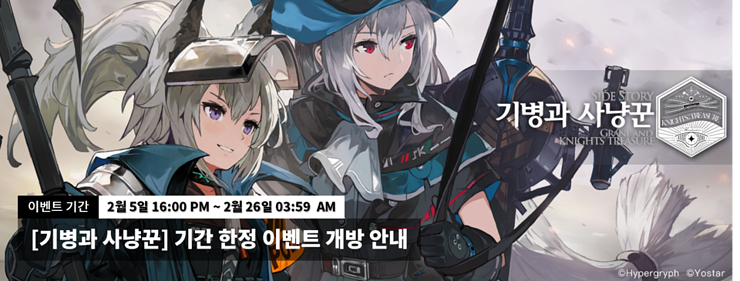 | 2020.02.05 | 사이드 스토리 - 기병과 사냥꾼 이벤트 (2020.02.05~02.19) |