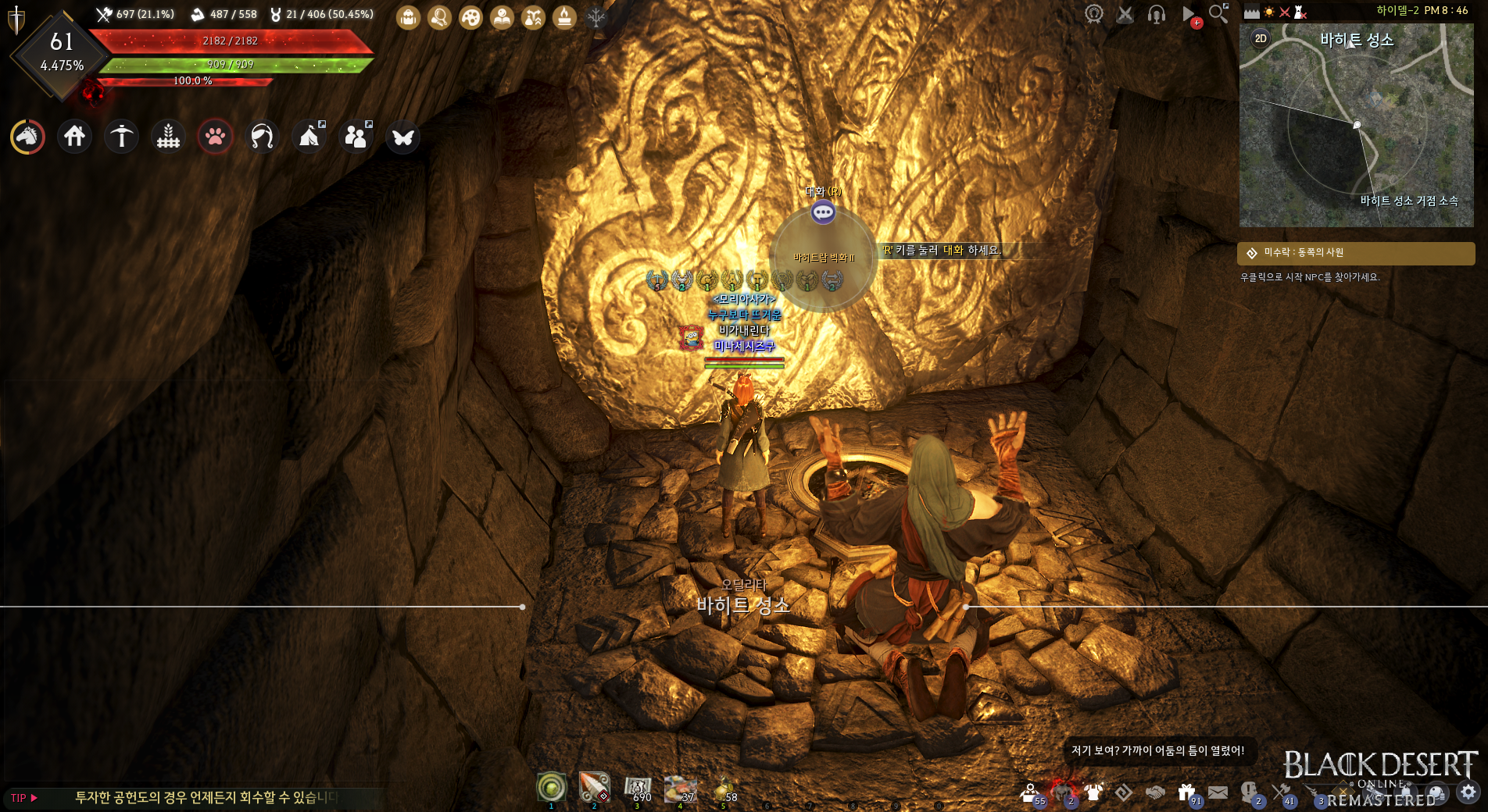 - 바히트 성소 3시 방향, NPC 코멜 7시 방향 제단
