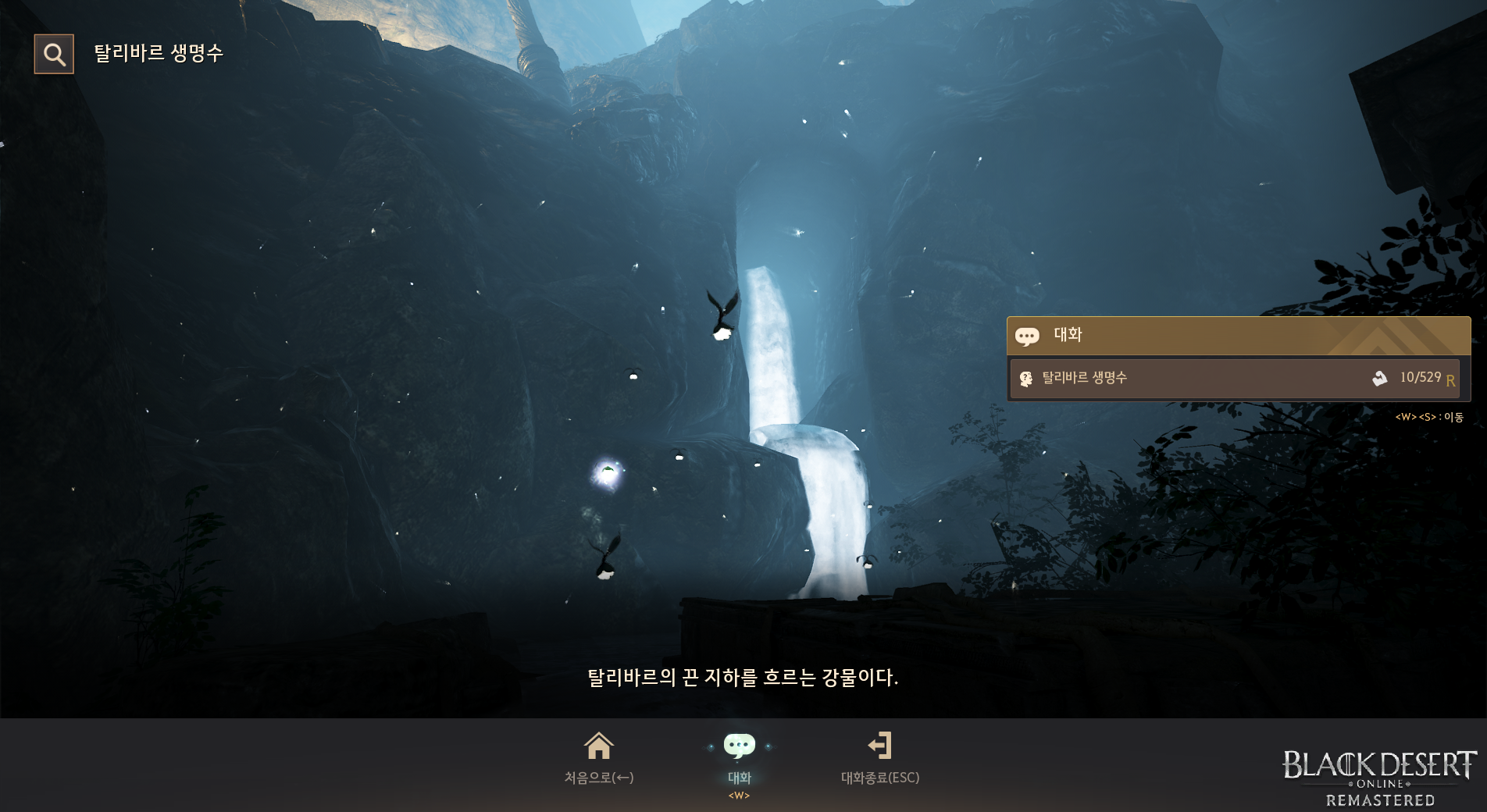 - 탈리바르 동굴 아래, 오딜리타 메인 의뢰 시 악몽의 그림자, 사이고드를 처치했던 곳, 살룬 늑대 뒤쪽은 낮은 폭포