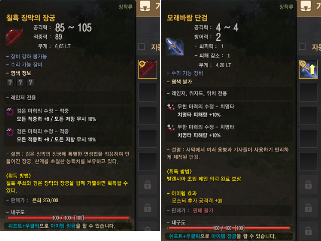 | 메디아 메인 의뢰 보상인 칠흑 무쇠를 이용해 업그레이드 | ||