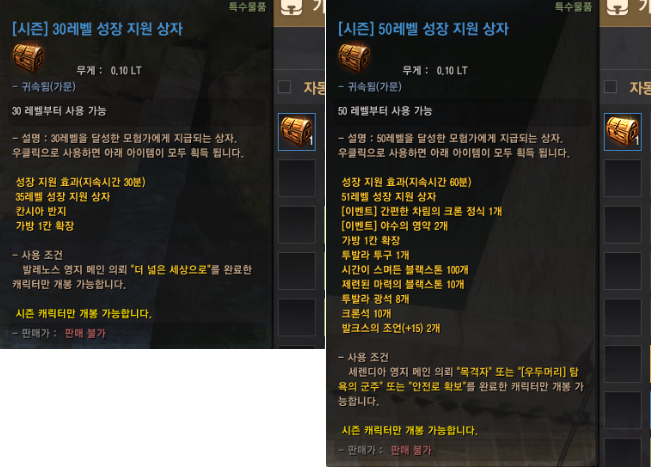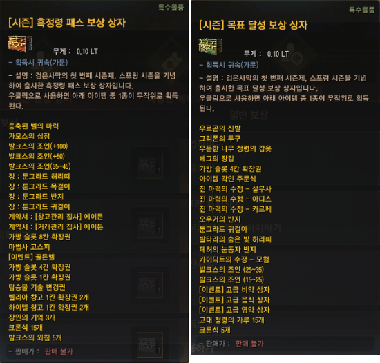 - 위 아이템들은 시즌 서버에서만 획득할 수 있어요.