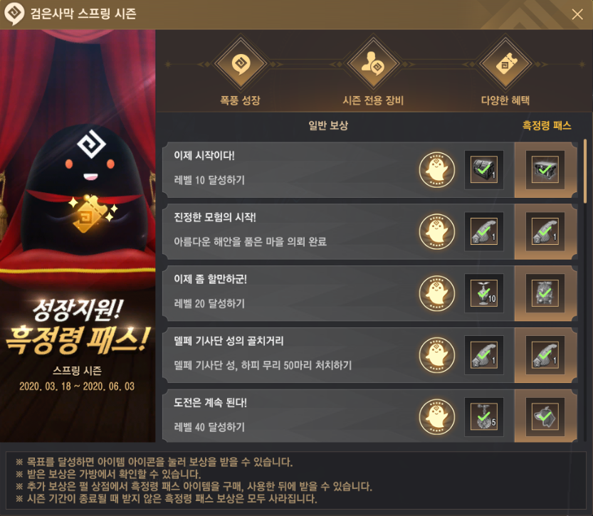 8. 스프링 시즌 도전과제와 흑정령 패스