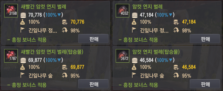채집에 시간과 재화 투자를 하고, 수익을 기대하시는 분들에게 참고 자료가 되었으면 해요.