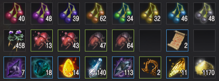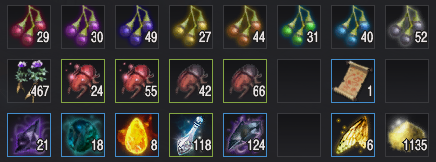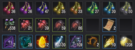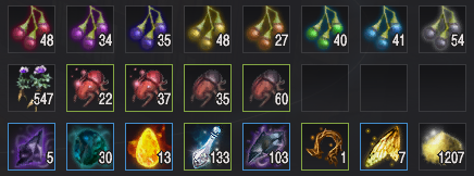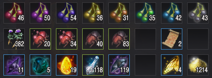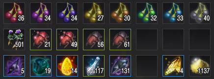 - 매회 채집 때마다 아이템마다의 최저 최대 획득량 차이가 있음, 특히 흑결정 조각의 경우 차이가 클 수 있으므로 감안해서 봐주세요.