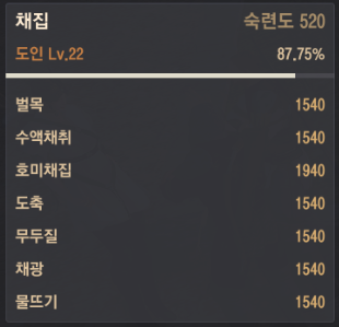 - 채집 숙련도 1900~1945