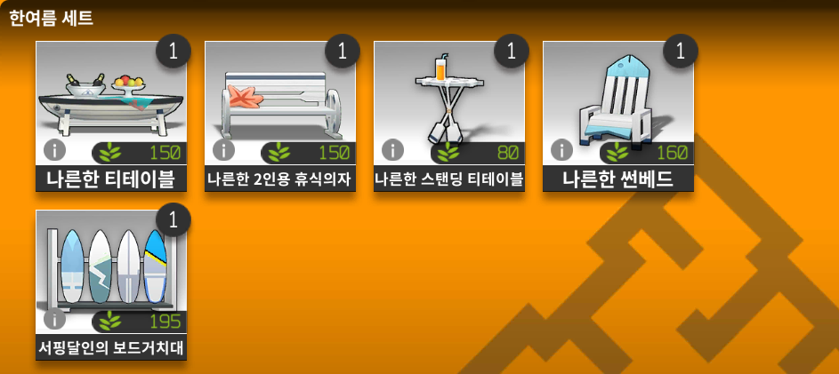 | 나른한 썬베드 | 160 | 265/1 | 상점 구입 |