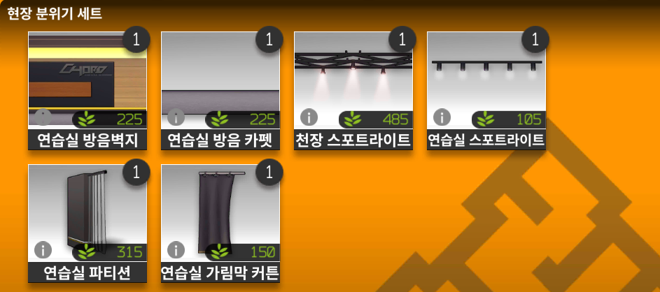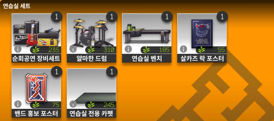 | 연습실 세트 | 6/6 | 300 |