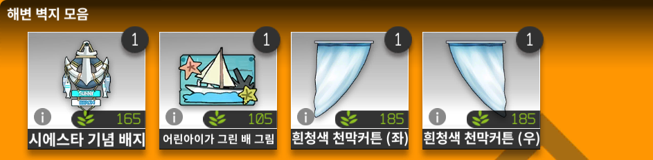 | 여름수납장 | 460 | 625/3 | 상점 구입 |