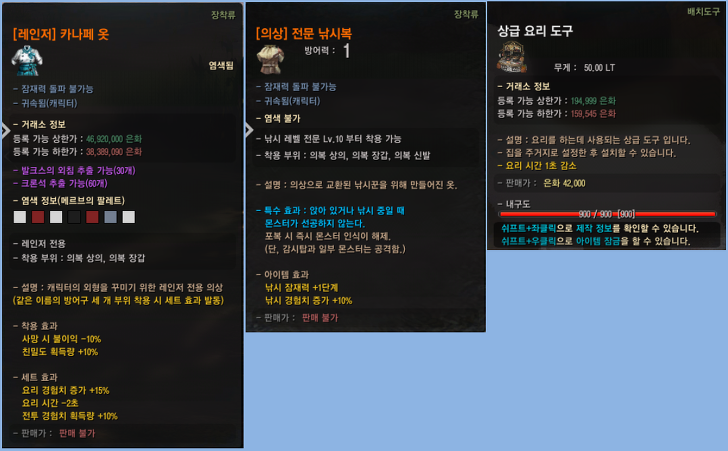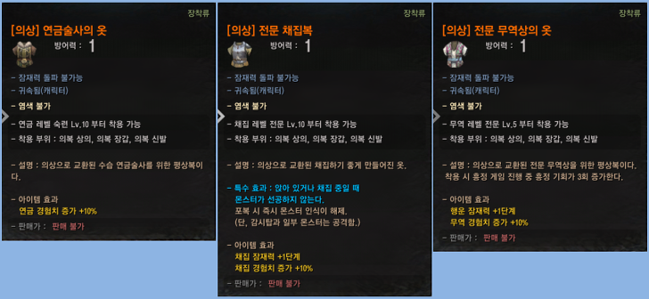 생활 경험치의 경우 요리는 역시 카나페 의상에 20% 의 요리 경험치가 붙어 있기 때문에 요리 시간 잠소와 함께 효율적일 수 있겠고, 그 외 생활 계열들은 과제 또는 NPC 에게 구입 가능한 전문 의상들을 의상 변환권으로 변환 시켜서 의상 슬롯에 착용할 수 있어요.