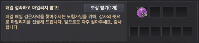 - 매일 검은사막에 접속 시, 도전과제(Y)를 통해 200 마일리지를 획득할 수 있습니다.