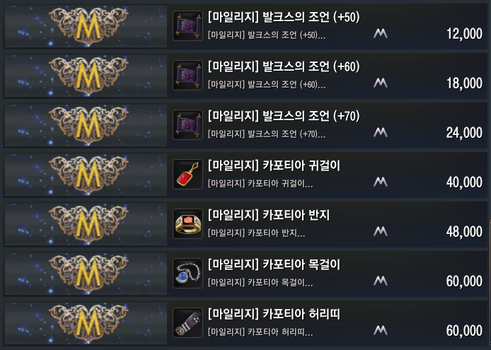 | 카포티아 반지 | 48,000 | 가문당 1회 구매 가능 |