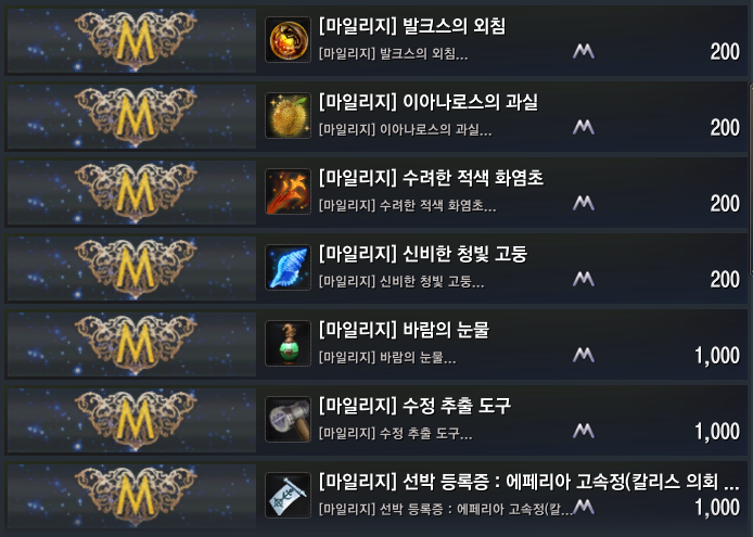 | 수정 추출 도구 | 1,000 | 가문당 주 1회 구매 가능 |