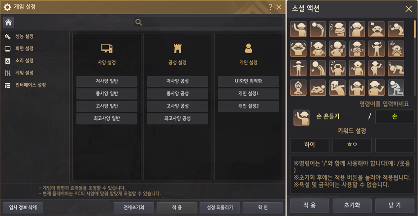 3. 게임 설정 → 인터페이스 설정 → 행동 단축키 메뉴에서 단축키 설정 메뉴 상단의 키보드 설정, 게임 패드 설정 단어가 각각 키보드 단축키 설정, 게임 패드 버튼 설정으로 변경되었습니다.