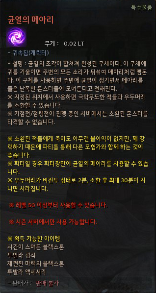 - 균열의 메아리는 시즌 서버에서만 사용할 수 있으며, 균열의 메아리를 사용하면 난폭한 우두머리 몬스터들이 몰려옵니다. 난폭한 우두머리를 처치하면 시즌 캐릭터 성장에 도움이 되는 아이템을 획득할 수 있습니다.