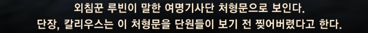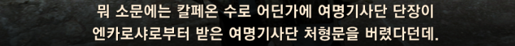 내용 - 칼페온 수로에서 여명기사단 처형문을 찾아 클라라에게 가져다주기