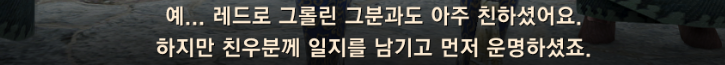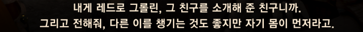 내용 - 레드로 그롤린의 일지 살펴보기, 일지에서 레드로의 친구를 추측하여 찾아가기, 레드로의 친구와 대화하기