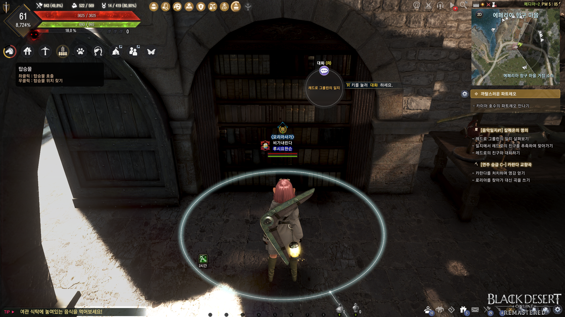 - 올리비노 그롤린 뒤쪽 집안의 책장을 살펴보고, 레드로의 친구인 귄트 언덕 <탐험 거점 관리> 바도루를 찾아가요.