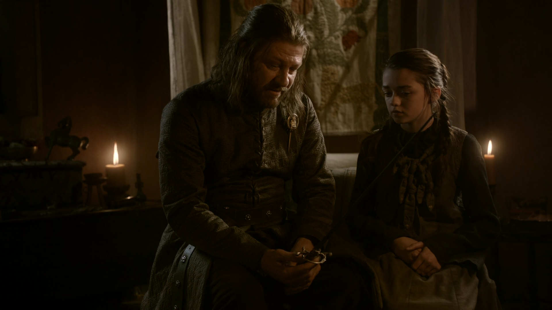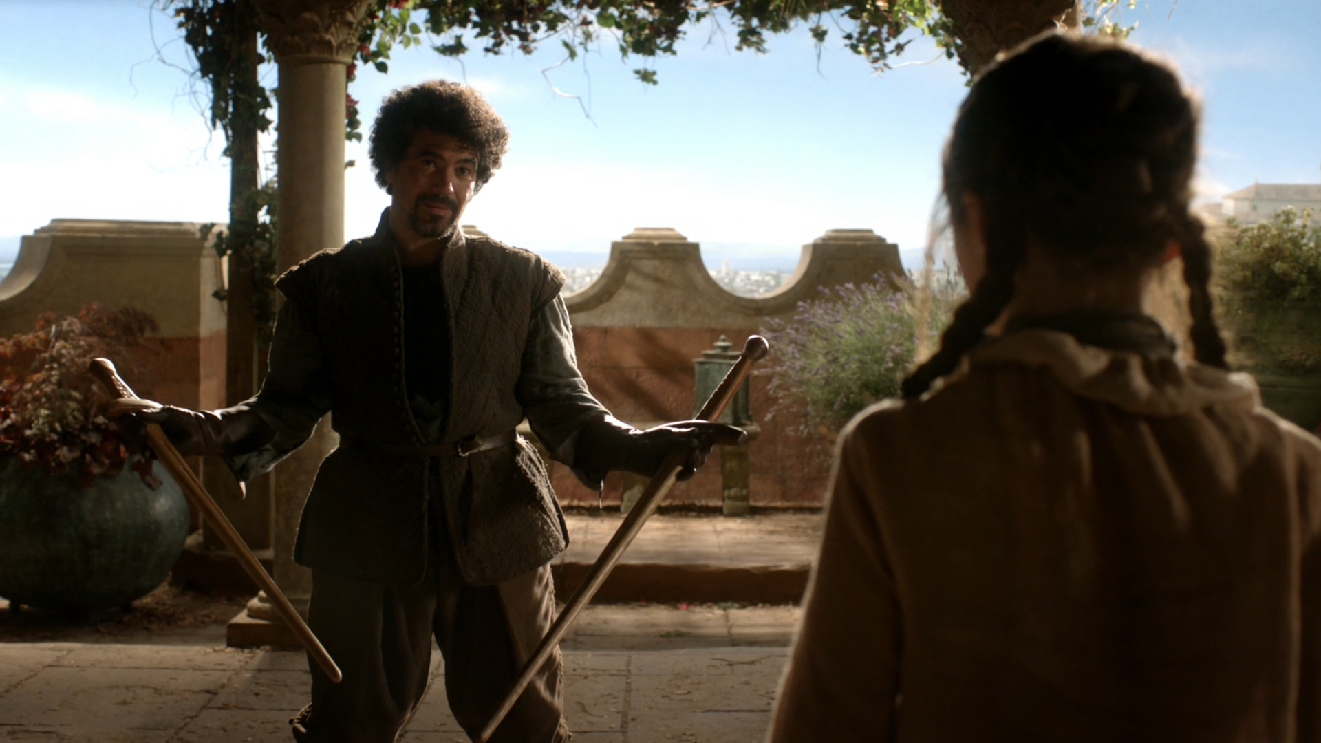 에다드 스타크는 아리아에게 브라보스 제일검이라고 불리는 시리오 포렐을 붙여주고, 그녀가 바라는 검술 연습을 하게 해 준다.