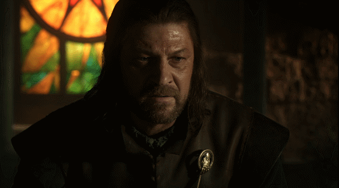 에다드가 증거를 찾았다는 말과 늑대(스타크 가문의 문장)와 사자(라니스터 가문의 문장)가 서로 물어 뜯게 생겼다는 말, 핸드가 암살 당할지도 모른다는 말에 놀라게 된다.
