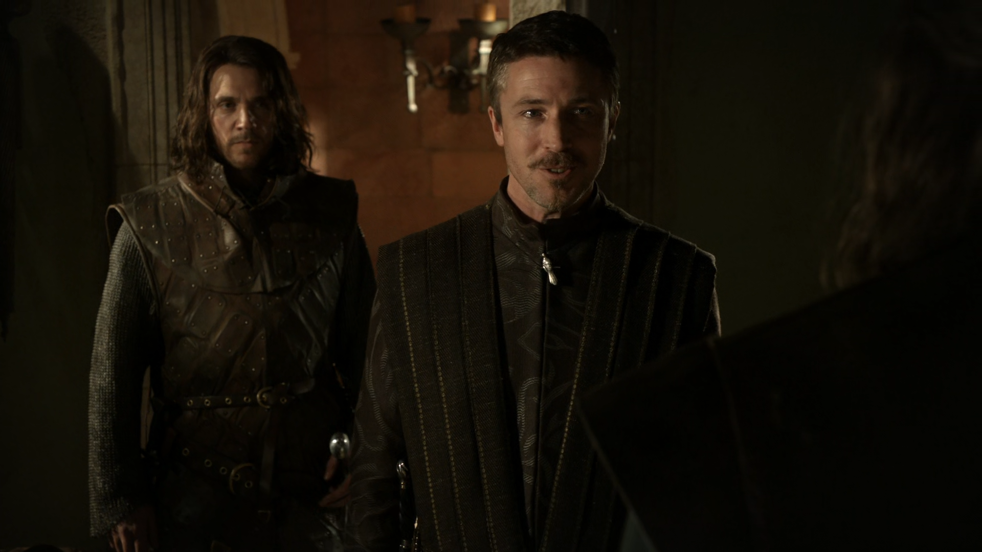 킹스랜딩의 음모가들인 바리스와 피터 베일리시는 농담으로 서로를 견제하고 협박한다.