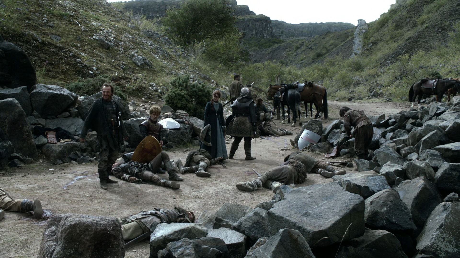 로버트 왕의 다른 아이를 만난 에다드 스타크. 하지만 티리온의 소식을 들은 제이미 라니스터의 병사들에게 포위를 당하고, 조리 카셀을 비롯한 부하들은 모두 살해당한다.
