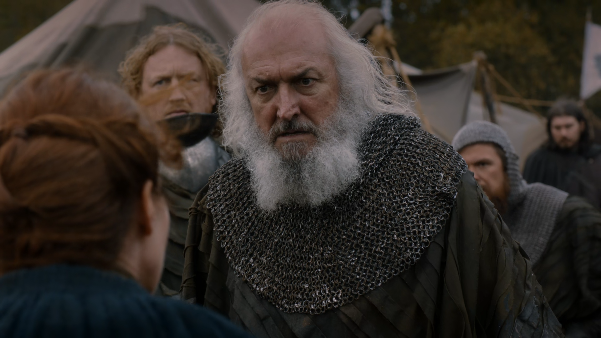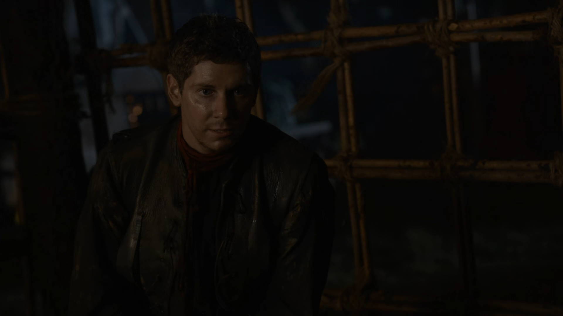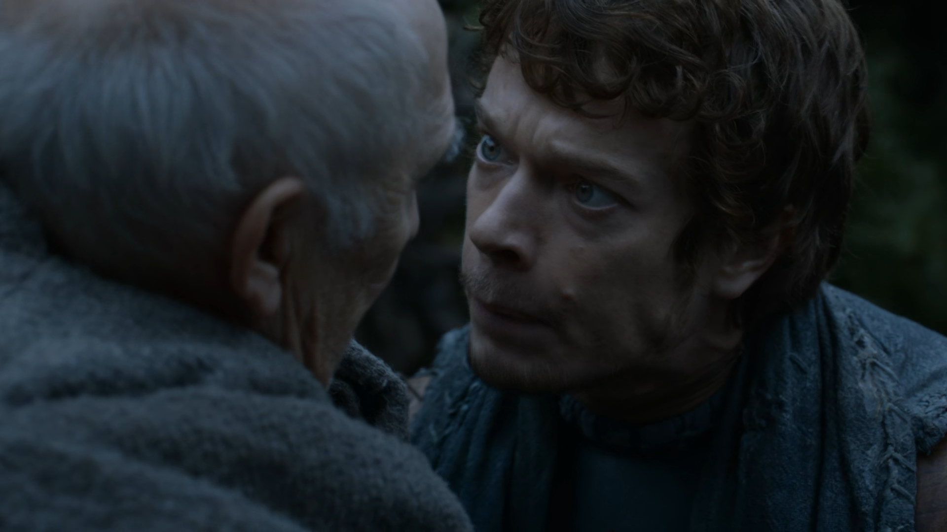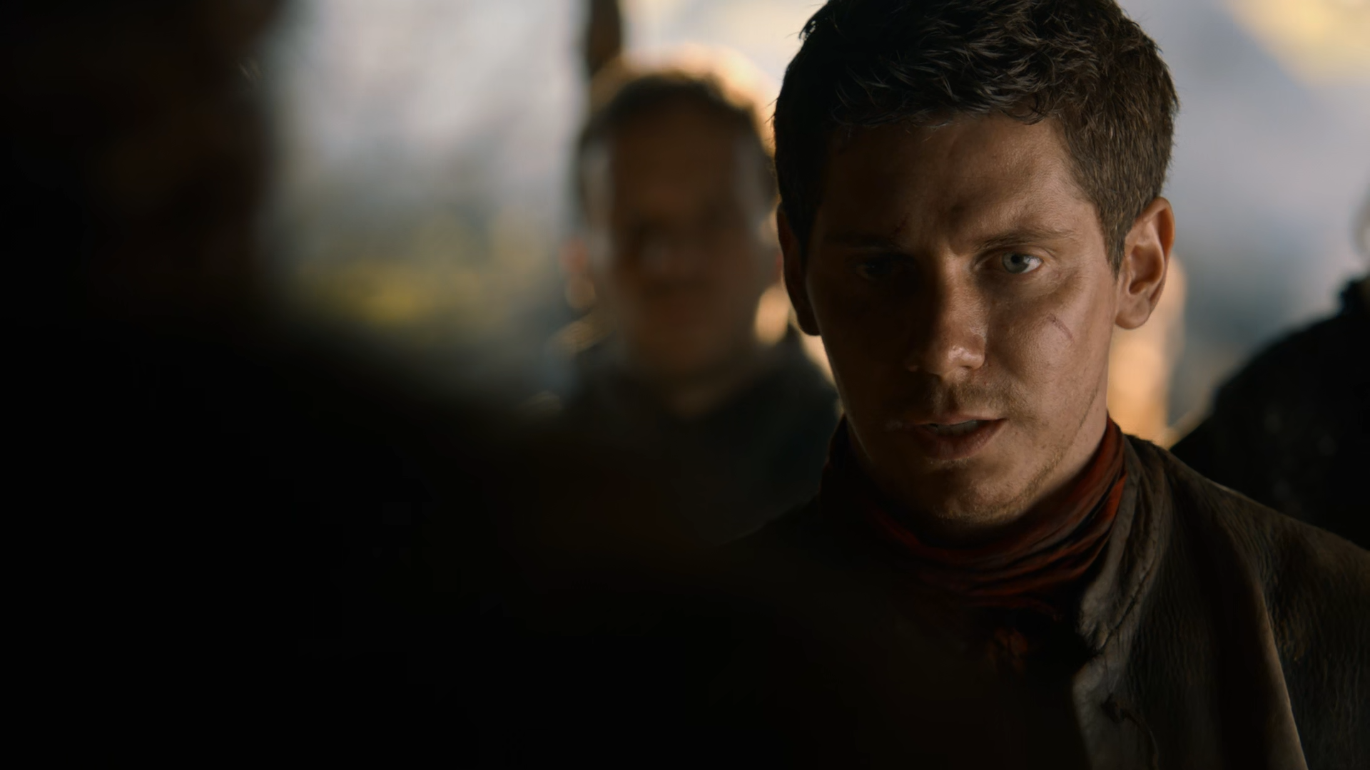 테온 그레이조이는 윈터펠의 새 영주인 자신에게 도전한 경고로 불에 탄 브랜과 릭콘 스타크의 시체를 보여주고, 그것을 본 마에스터 루윈은 절규한다.