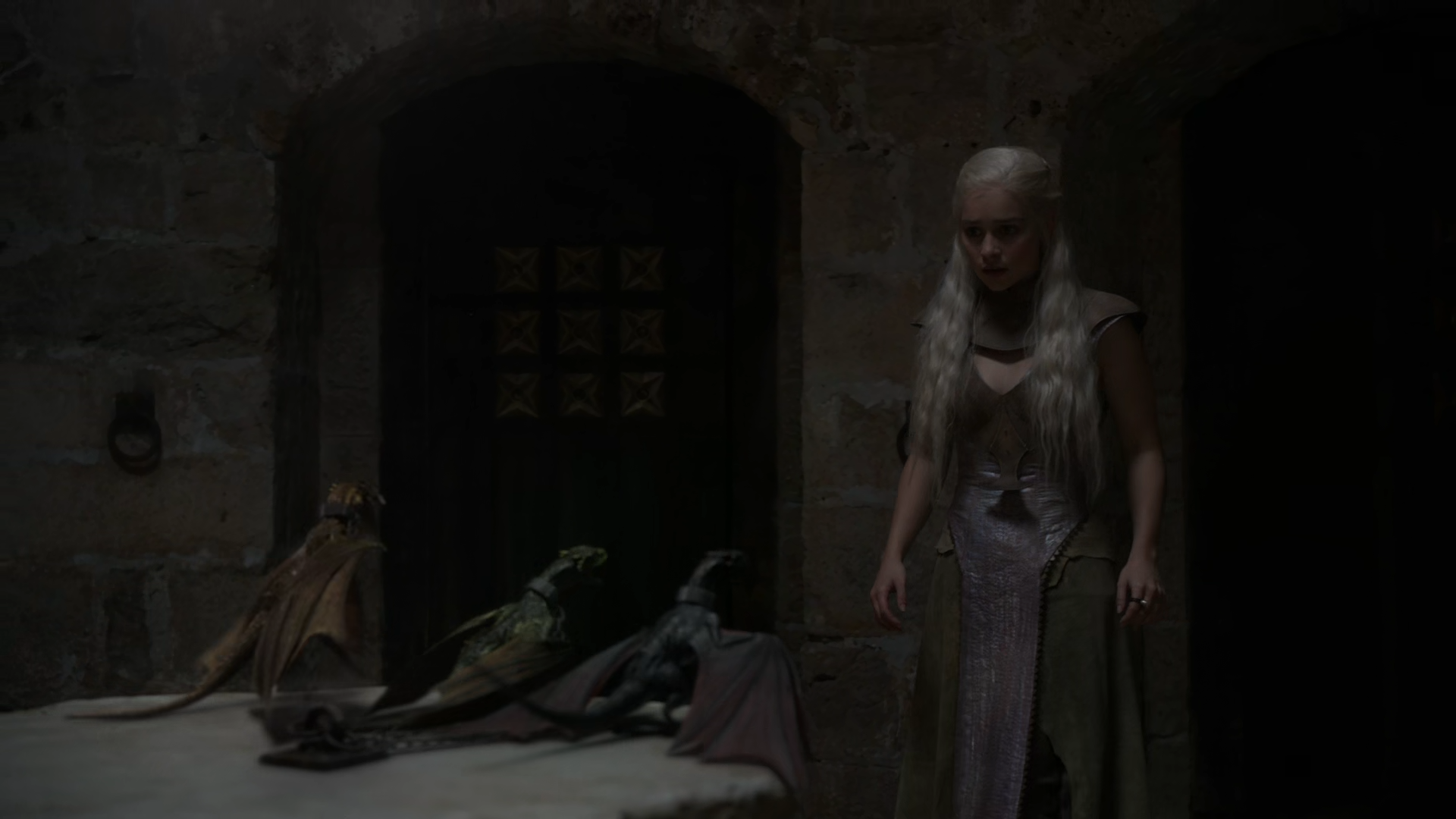 불멸자의 탑으로 간 대너리스는 칼 드로고와 자신의 아기를 만나는 환상을 보게 된다.
