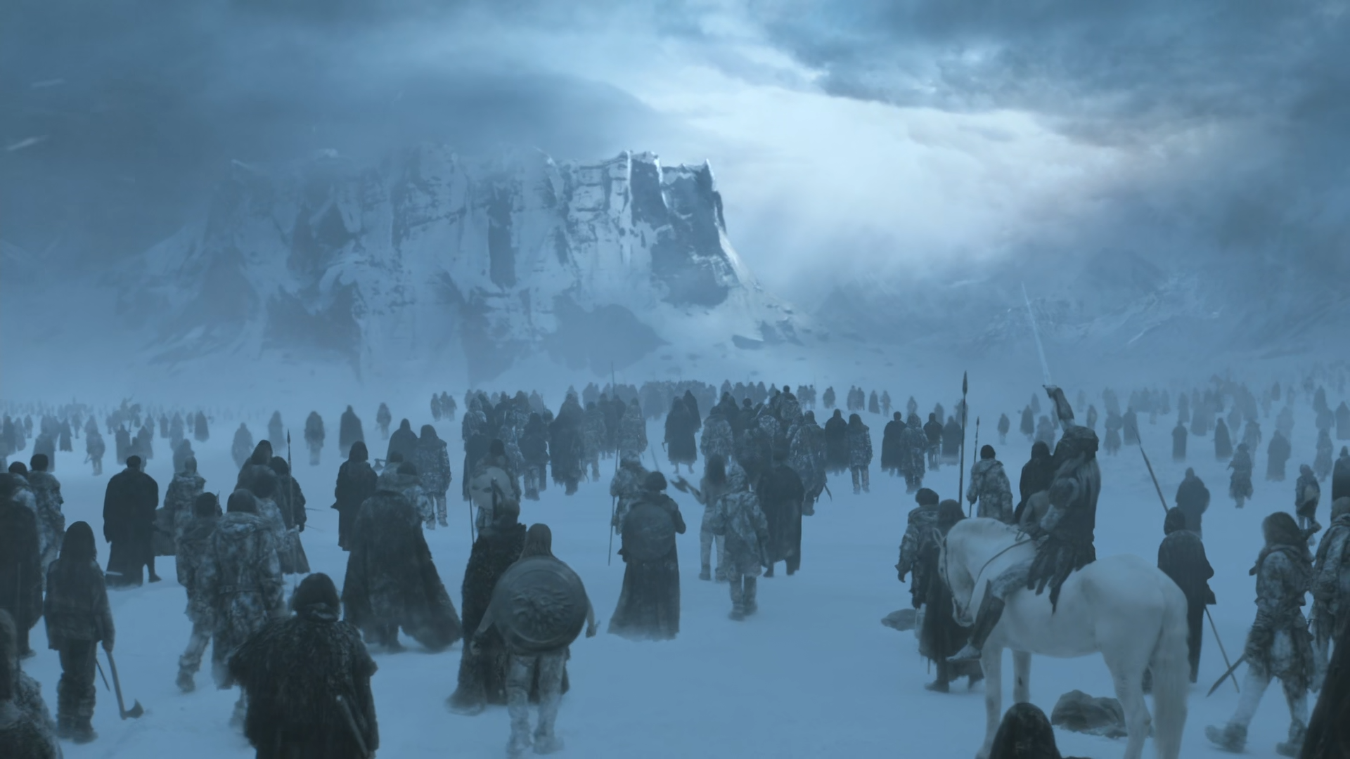"두 번이면 야인이야. 혼자 싸울 수는 없어. 가자. (Two blasts is wildlings. You're not fighting them alone. Come on.)"