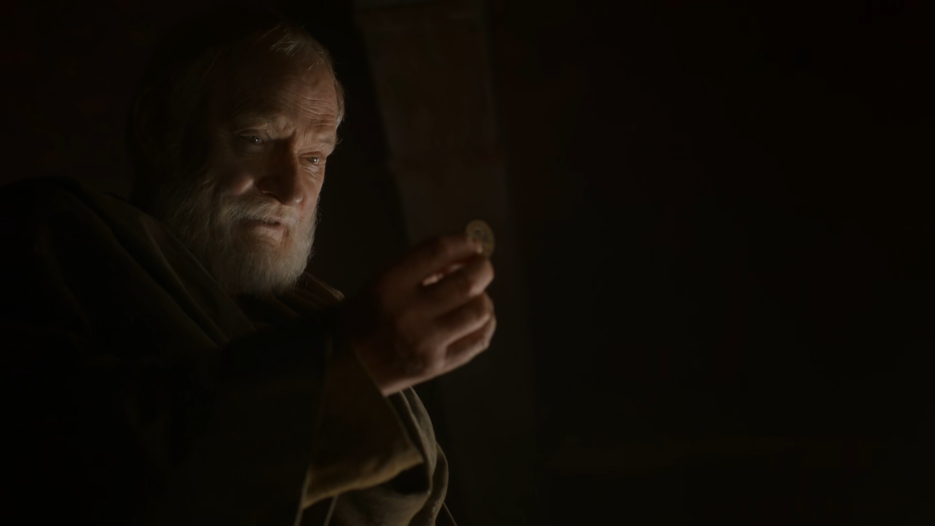 가족을 찾아야 하는 아리아는 단념하고, 그런 아리아에게 자켄은 동전 하나를 주며, 언젠가 자신을 찾을 때가 오면, 브라보스 출신 누구에게든 동전을 주며, "발라 모굴리스. (Valar Morghulis.)"라고 말하라고 한다.