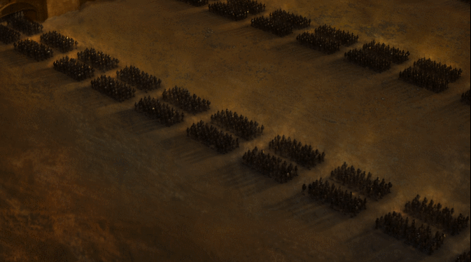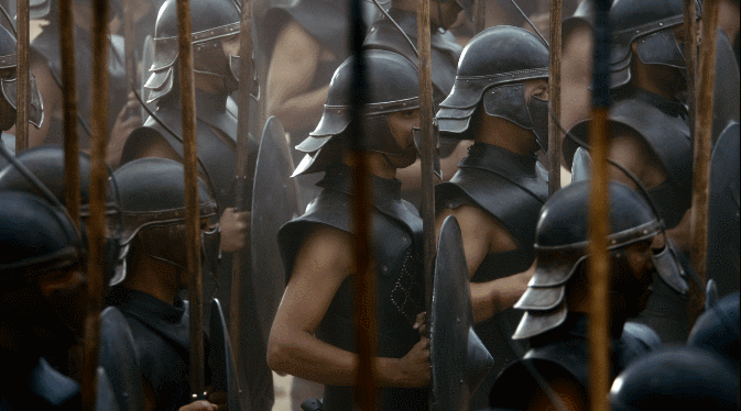 "거세병들! 주인들을 죽이고 병사들을 죽여라. 채찍을 쥔 모두를 죽이되 아이는 해치지 마라. 모든 노예들의 사슬을 끊어 주어라. (Unsullied! Slay the masters, slay the soldiers, slay every man who holds a whip, but harm no child. Strike the chains off every slave you see!)"