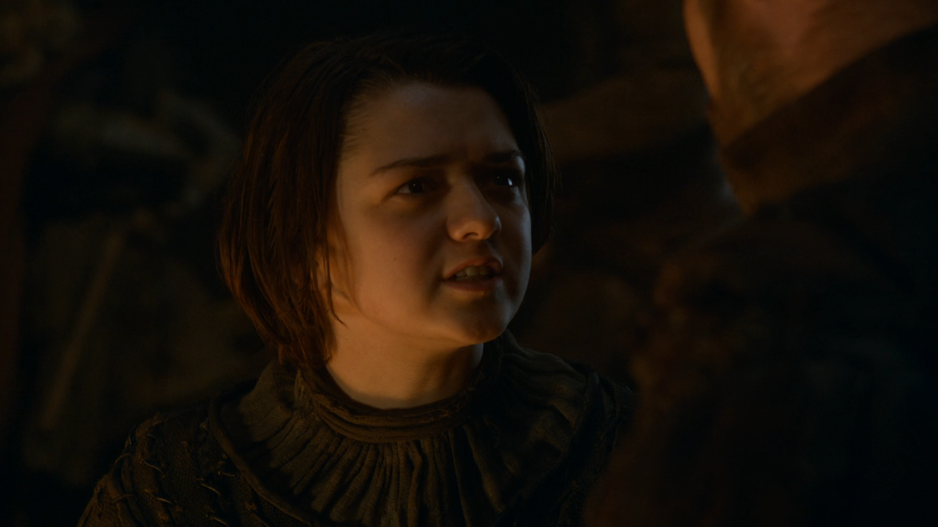 아리아는 멜리산드레에게 겐드리를 판 일로 베릭 돈다리온과 미르의 토로스를 불신한다. 그 와중에 라니스터 정찰대를 발견한 깃발 없는 형제단은 아리아를 리버런으로 데려다주겠다는 약속을 미루고, 습격을 준비한다.