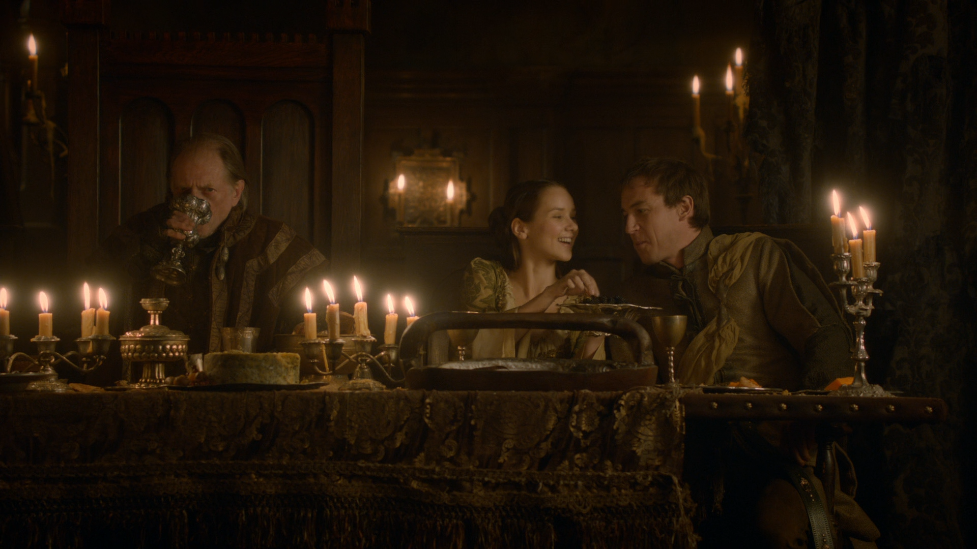 - 캐틀린, 롭, 탈리사 등이 왈더 프레이가 주는 빵과 소금을 먹으며 손님의 권리를 얻게 된다. 웨스테로스에서의 접대의 관습은 신성한 것으로 손님으로 맞아들여 접대를 하게 되면, 그 순간부터 주인은 손님의 안전을 보장하는 것이다.