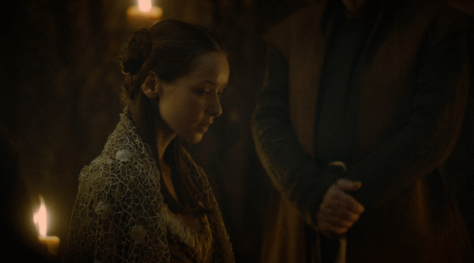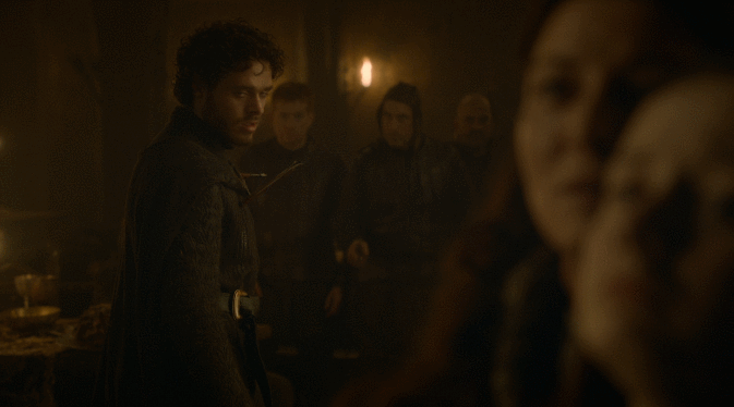 캐틀린은 왈더 프레이의 아내를 인질로 삼아 롭을 탈출시켜 보려고 하지만, 루즈 볼튼은 직접 롭을 살해한다.