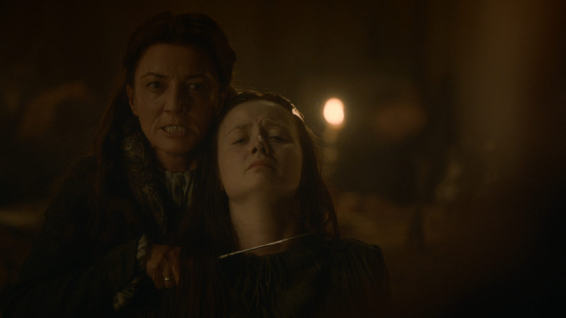 아들의 죽음을 본 후 절규하던 캐틀린 스타크 역시 살해당하면서, 스타크 가문이 몰락한다.