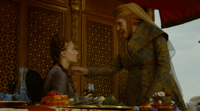 조프리 바라테온과 마저리 티렐의 결혼 축하연이 열린다. 브론은 셰이가 떠났다고 티리온을 안심시키지만 티리온은 무언가가 불안하다. 올레나 티렐은 산사에게 롭의 죽음과 피의 결혼식을 애도한다.