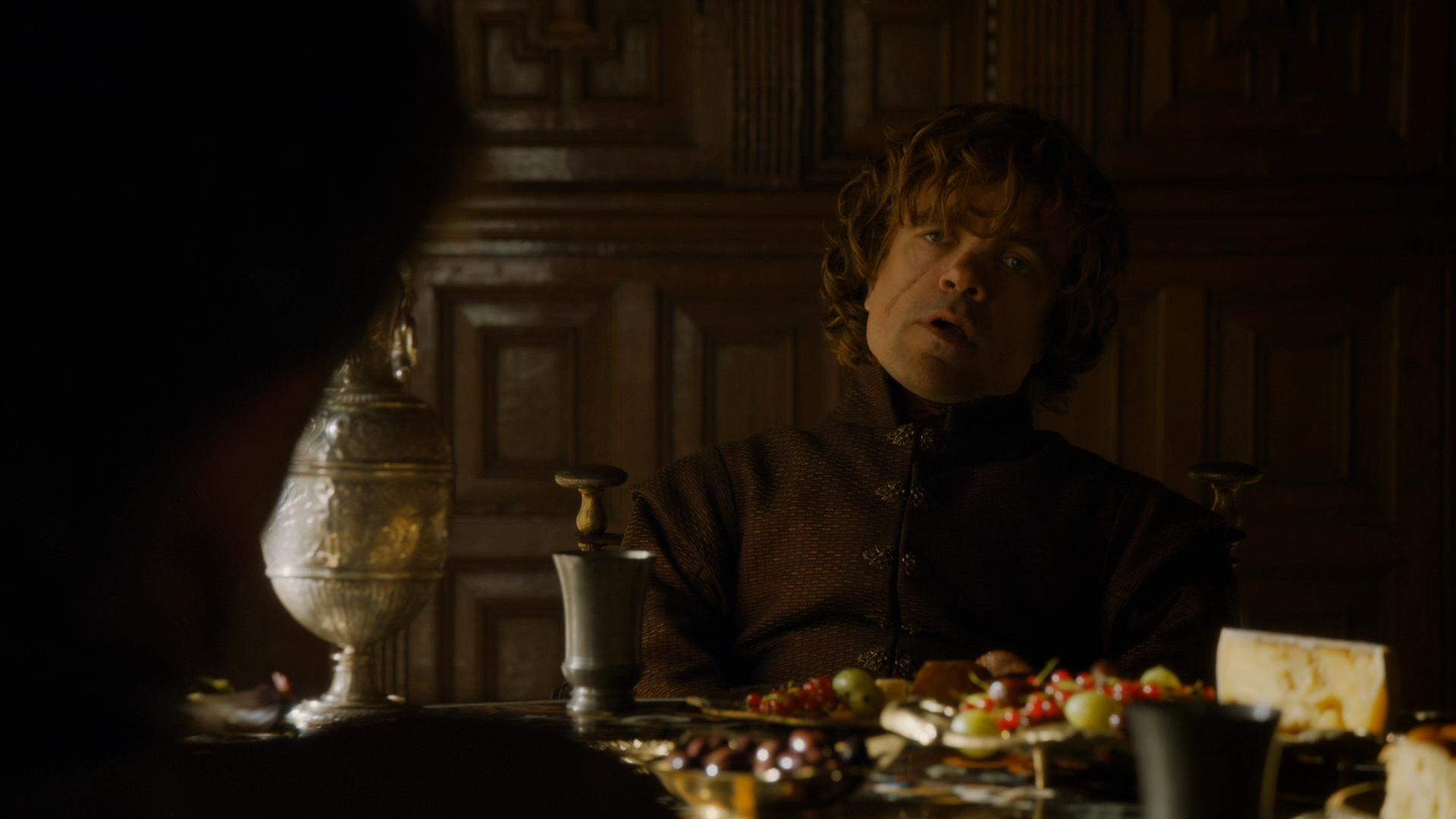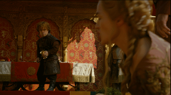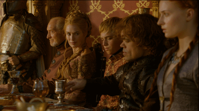 조프리는 티리온 라니스터를 조롱하고, 티리온은 언변으로 조프리를 상대한다. 세르세이의 냉소속에서 분위기가 얼어붙고, 조프리는 티리온을 계속 모욕한다.