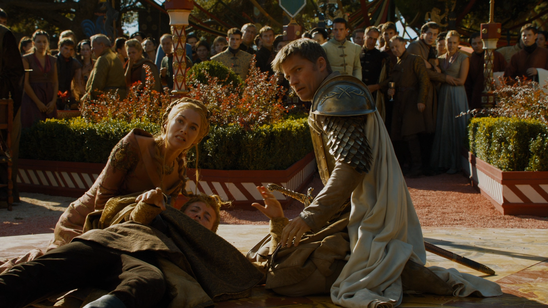 발작 중이던 조프리는 티리온을 지목하며, 세르세이의 품 안에서 죽음을 맞는다. 세르세이는 티리온이 조프리를 독살했다며 절규한다.