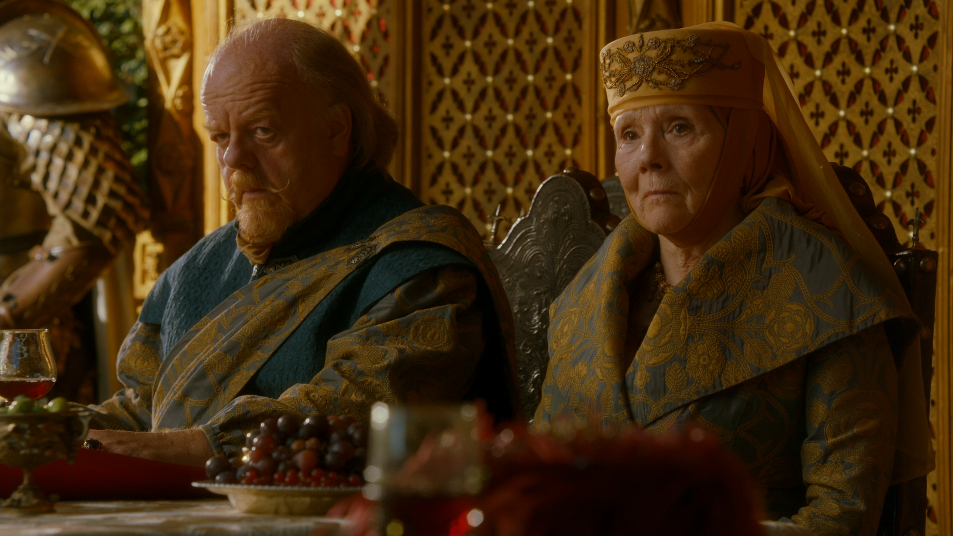 조프리와 마저리의 결혼 전 만찬에서 세르세이는 셰이의 존재를 타이윈에게 알리고, 티리온은 왠지 불안해진다. 조프리는 타이윈에게서 발리리아 검 한 자루를 선물 받고는 과부의 통곡(Widow's Wail)이라는 이름을 붙인다.