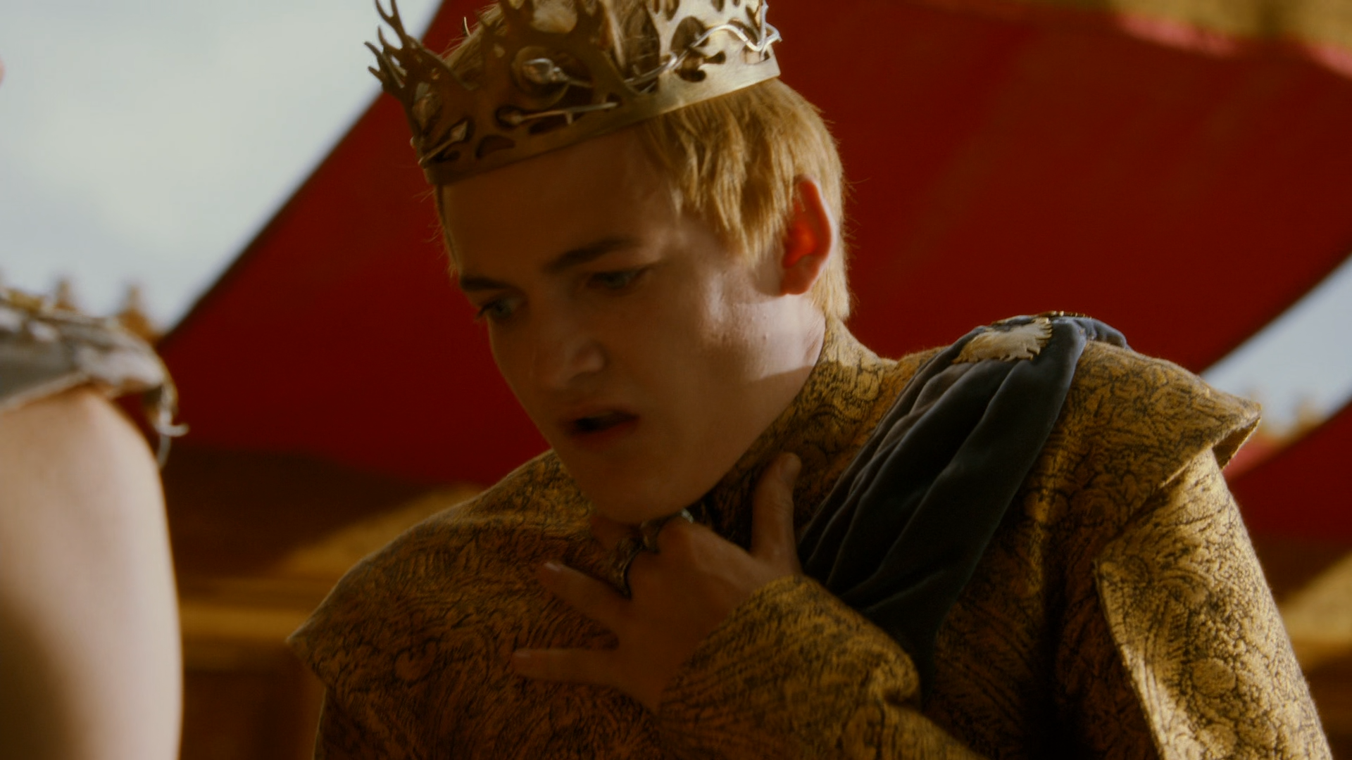 티리온을 시종으로 삼아 조롱하던 조프리는, 티리온이 준 와인을 마시고 경련을 일으킨다.